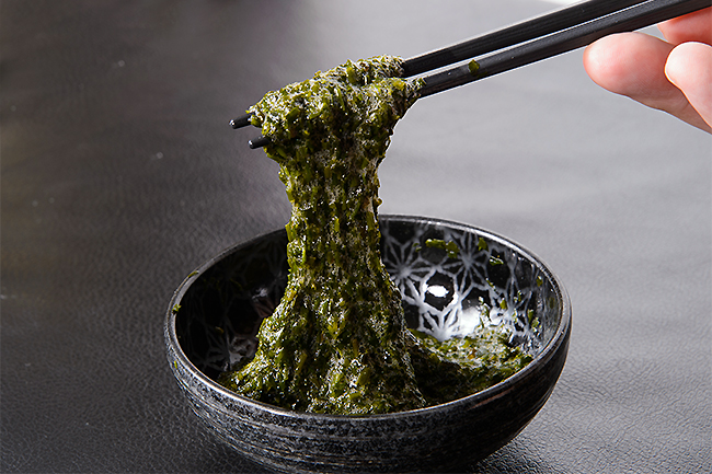 菅島の海では春先になるとアカモクが育ちます。栄養豊富な菅島の海で育ったアカモクは海藻本来の風味が芳醇。独特の「ねばり」と「シャキシャキの食感」が特色のアカモク。そのままおみそ汁などに入れて。ほか刻みネギ、カツを節とあえて麺つゆやポン酢で味付けしてそのまま食べる他、うどんやそばにトッピングしたり山芋や納豆、キムチなどとあえても美味しくいただけます。ここではいろんなアカモクレシピをご紹介。ぜひ味わってみて下さい。